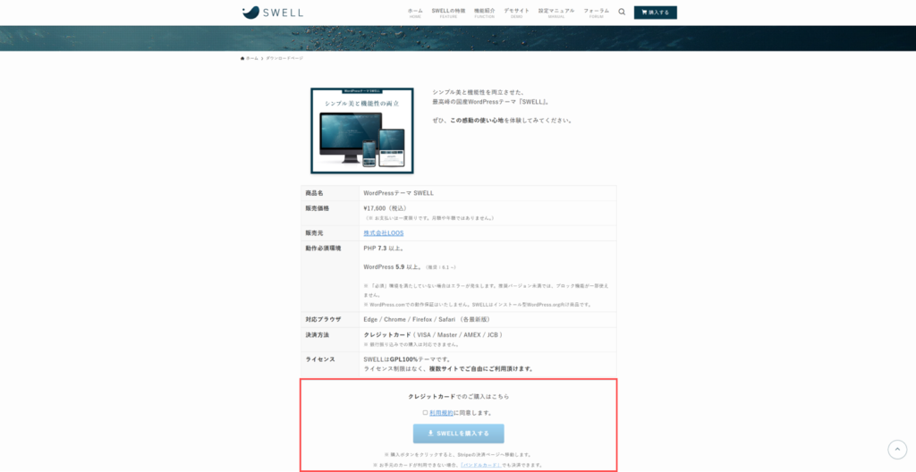 SWELLは有料テーマですので、公式サイトからの購入が必要です。以下の手順に従って購入しましょう。
